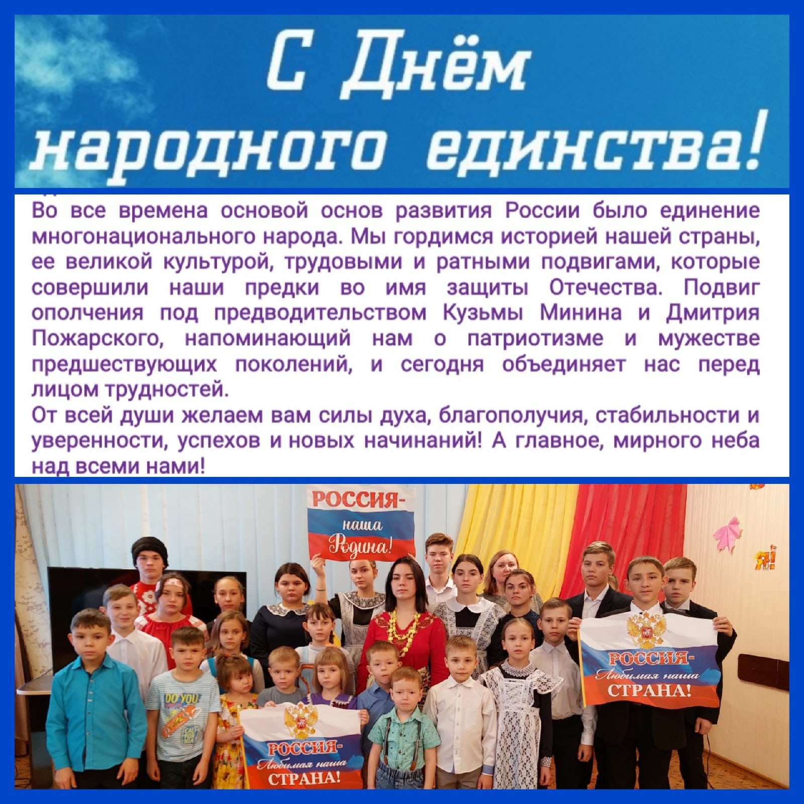 Члены Клуба замещающих семей поздравляют с Днём народного единства и желают всем успехов, благополучия и всего самого доброго!