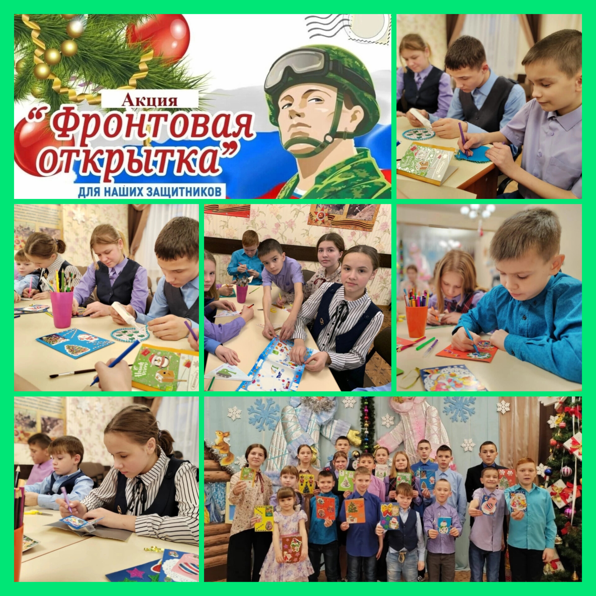 В преддверии Нового года члены Клуба замещающих семей и воспитанники детского дома "Дружба" приняли участие во Всероссийской акции "ФРОНТОВАЯ ОТКРЫТКА". Ребята изготовили для участников специальной военной операции открытки с тёплыми пожеланиями и поздравлениями.